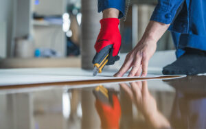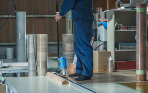 東浦営業所ではカーペットやクッションフロア等、敷物の加工作業を行っています。