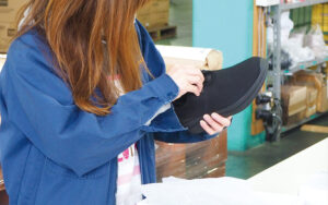 また、工場から直送された素材の裁断や縫製、値札付け、シール・ラベル貼り、封筒入れ、梱包などの流通加工サービスも行っています。